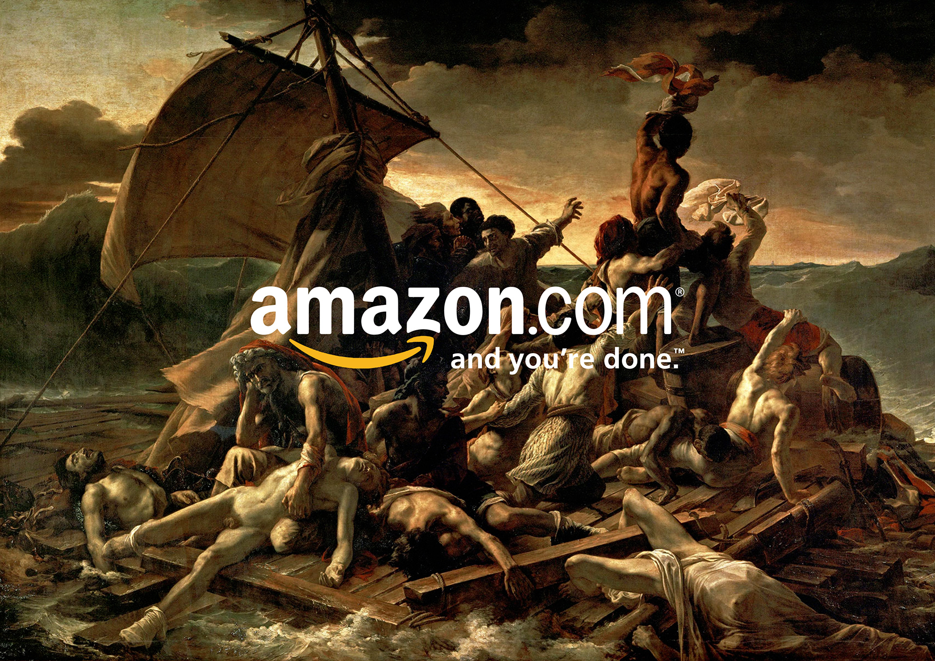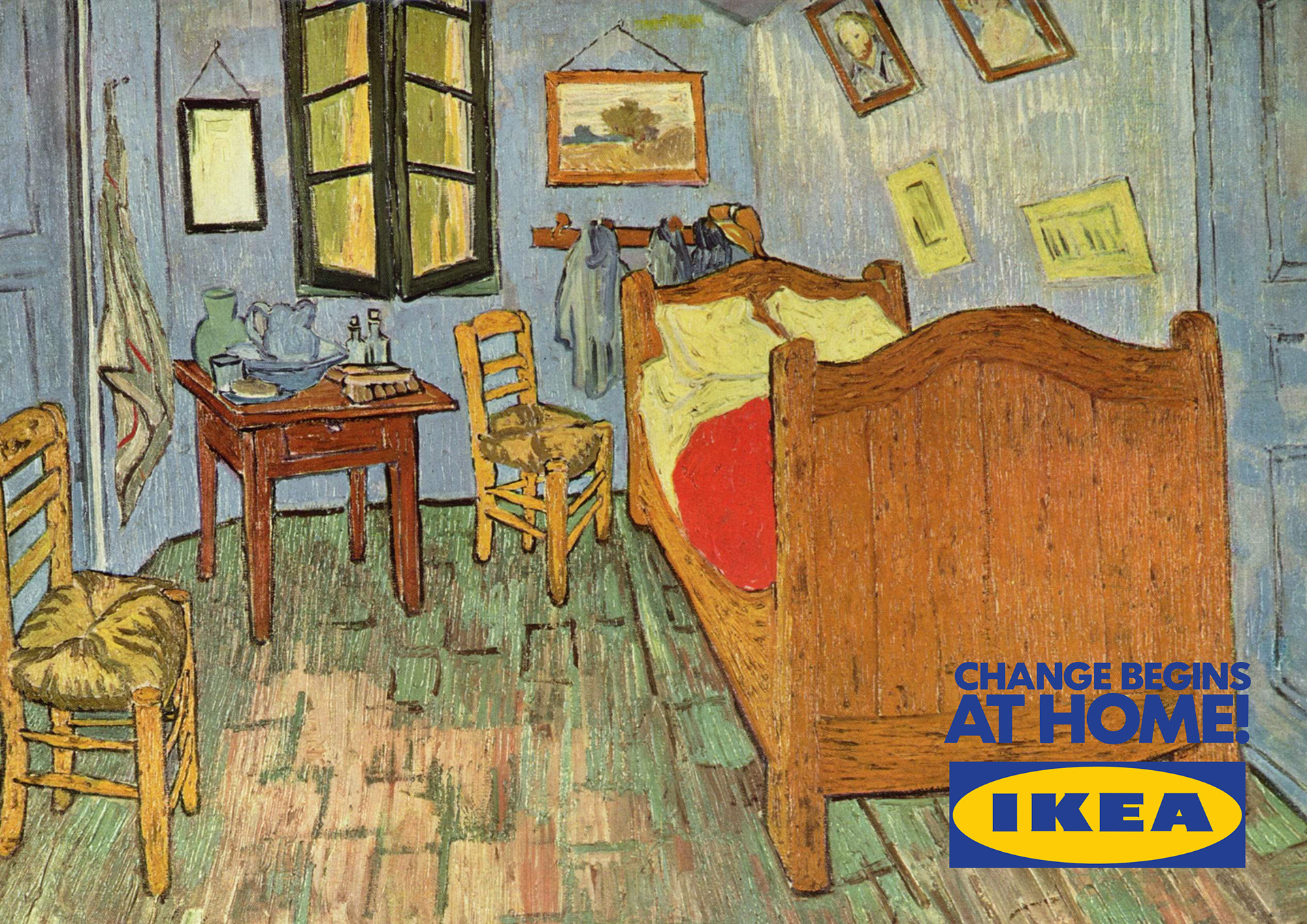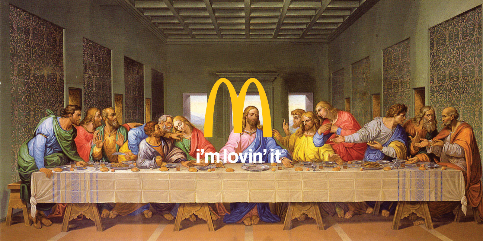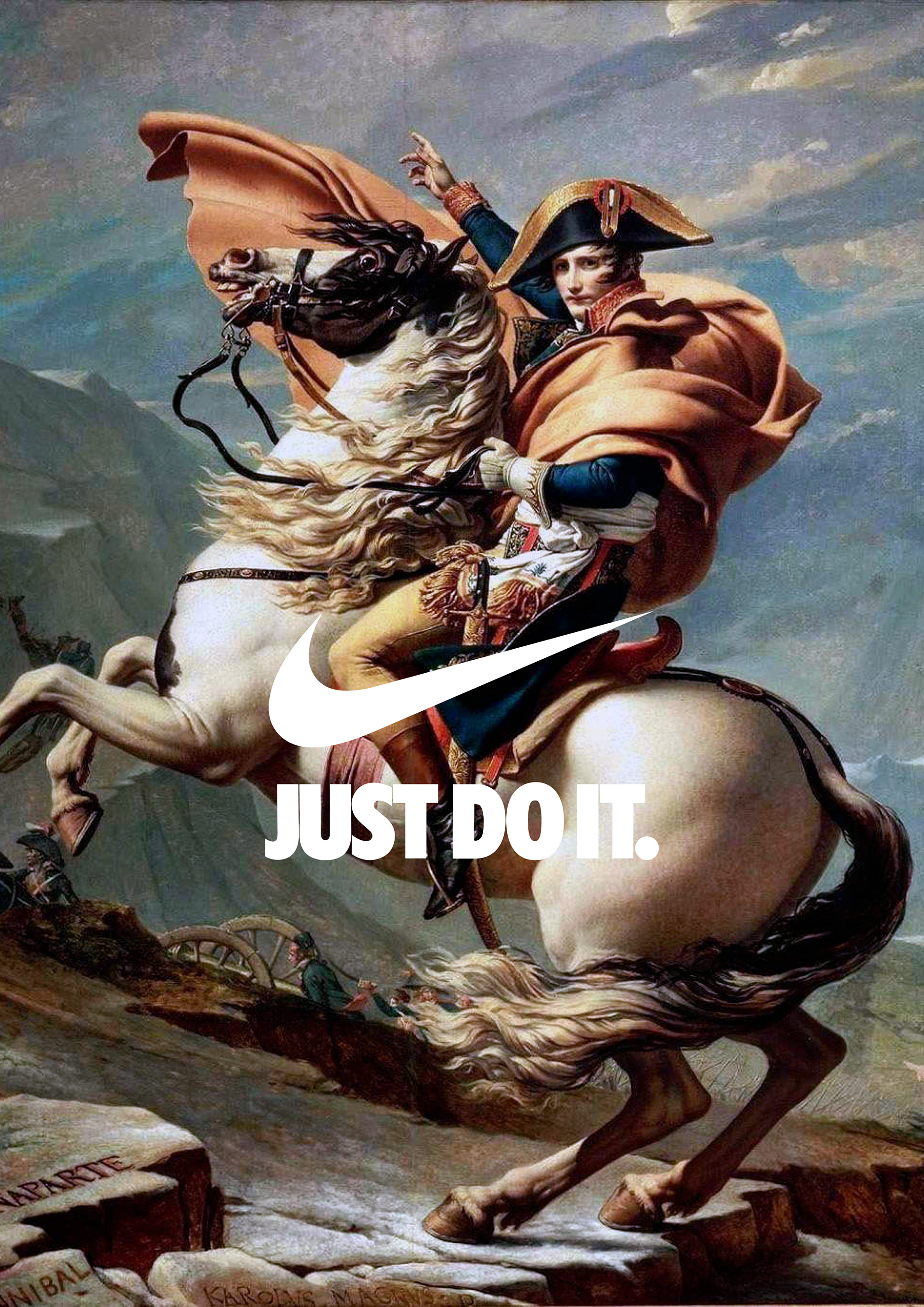 Combining slogans with notorious works of art.