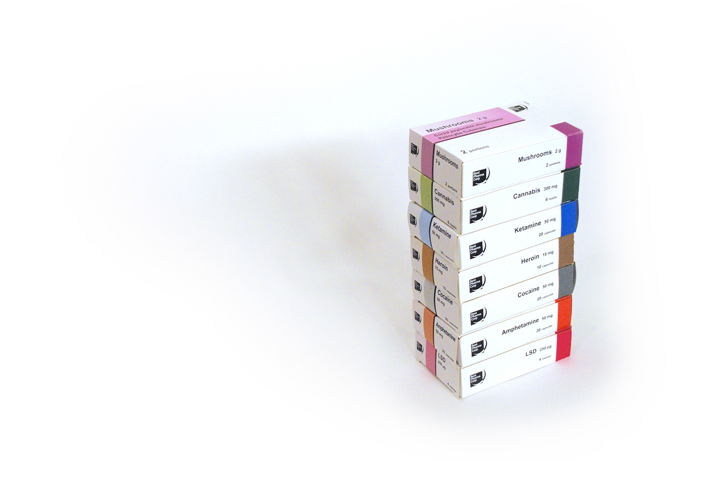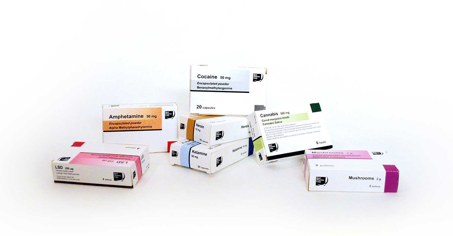 Six of the most common illegal narcotics packaged as pharmaceutical drugs.